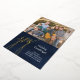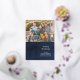 Photo greeting card with contemporary Joy in bright gold script lettering, Modern, elegant navy blue watercolor background with gold foil script text to greet your family and friends with class and sophistication this holiday season. stylish flat greeting card. Design Copyright © www.CustomChristmasPhotoCards.com Sample Image Photography © Storytree Studios, Stanford, CA