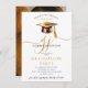 Celebrate your achievement in style with this modern graduation party invitation, featuring a sleek design with a gold graduation cap and topper, and elegant gold script calligraphy initials, and photo on the back. The clean design adds a touch of sophistication. Gold and black type. Available in print, as a digital download, or both.