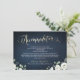 Modern faux gold accommodation calligraphy and watercolor white floral eucalyptus greenery on dark navy blue background, elegant and stylish, great for greenery rustic wedding, botanical garden wedding, boho floral wedding in summer and winter.