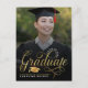 Announce your graduation to family and friends with these trendy graduation announcement postcards! This modern stylish graduation announcement features beautiful gold script text spelling out the word graduation with a text template to personalize with the name, school and graduating year. Add additional message or click '' customize further''to edit this template.