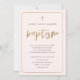Modern Gold Script Religious Baptism Invitation with minimal cross and frame. Click the edit button to customize this design with your details.
