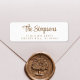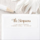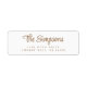 Modern white return address label with your name monogrammed in a stylish gold script and your address in classic gold serif typography.