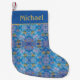 Colourful stylish blue and gold snowflake personalized Christmas Stockings. Modern design that will add style to your holiday décor.