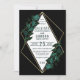 Modern Gold Teal Black Greenery Terrarium Wedding Invitation