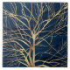 Modern Gold Tree Silhouette Minimal Blue Design Tile