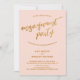 Modern Gold Waves Handwriting on Blush Engagement Invitation