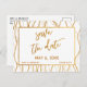 Modern Gold Waves Handwriting White Save the Date Announcement Postcard