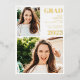 Modern simple minimalist 3 photos graduation party. Add your photos, with a simple bold script real gold foil, black and white, vertical layout.