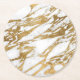 Modern Gold White Marble Stone Chic Pattern Round Paper Coaster