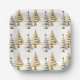 Make a bold, sophisticated statement with these modern square paper plates, designed for hosts who love refined, contemporary style. Featuring a striking golden swirl Christmas tree alongside a faux gold-and-white snow-covered tree, each topped with a star, this design brings together festive charm and upscale minimalism.