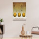 An abstract and modern Easter illustration featuring 3 golden Easter eggs on a bokeh background with abstract flowers.
