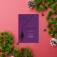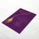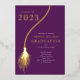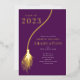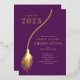 Modern Class of 2022 graduation party invitation featuring a gold tassel and bold lettering set on a purple background. Visit our shop to view this design in a variety of school colours.