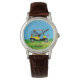 I like the illustrative watch with the lady on it. It is a great reminder that I am blessed and it has a very sturdy leather band. The colors are true and vibrant. Love the color of the Leather also. Very nice.