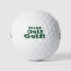 This modern golf ball is for all of you golf lovers out there! The word Golf is printed in green with bold typography three times. Each time it gets a little bigger and has an exclamation point after the final word.