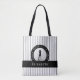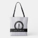 Chic custom tote bag features a female golfer silhouette placed on a realistic golf ball image, framed by curved text “GOLF GOLF GOLF GOLF” in crisp white. A black band holds your personalized name or short phrase in elegant white script. The background showcases a trendy vertical dash stripe pattern in ultimate grey and white. Both sides are customizable — add a name on one and a phrase like “Live to Golf” on the other. Makes a stylish gift for golf lovers, athletes, or tournament participants. Colours and fonts are editable in the design tool. Message BeachPauseDesigns with questions or custom requests.