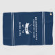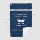 Upgrade your game-day essentials with this sleek Personalized Black Golf Towel featuring monogram initials and a modern crossed-clubs emblem. Designed for golfers who value both timeless style and practical function, this customizable golf towel makes a striking addition to any bag. The bold navy blue background, accented by clean white dividing stripes, creates a sophisticated layout that highlights your custom text. Personalize the centre with your country club name, a favourite golf quote, or any message that reflects your identity on the green. Below, classic white crossed golf clubs are framed by a curved ribbon banner that showcases your custom monogram initials, adding an elegant, personalized flourish. A final line beneath the design lets you display the year established or another meaningful detail, making this towel a memorable keepsake. Ideal for Father's Day, golf tournaments, birthdays, or gifts for your favourite golf enthusiast, this monogram golf towel balances professional polish with standout personalization—perfect for making your mark on the course.