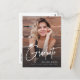Modern signature script Graduation Announcement and invitation with graduation cap and photos in front and back, simple and unique. Custom it with your own photos and grad party information.
