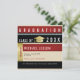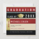 Black and red stripes with the image of a faux gold grad hat and custom graduation party information... a stylish and modern rsvp design
