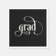 Simple and stylish this black and white graduation party paper napkin design features trendy script text spelling out the word "grad" with the class year that can be personalized to any year. In addition to graduation parties and events, this napkin is also a good choice for class reunions, and alumni events. This napkin is available in 3 sizes: cocktail, luncheon or dinner size with plain or coined edges.