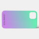 A fun, stylish case with a modern faded gradient background from mint green to lavender purple with a neon vibe. Your name, initials or favourite word in modern block typography in trendy off black which you can easily personalise for yourself or as a special gift for a loved one.
