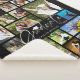 Easily create a modern, stylish photo collage keepsake photo memory blanket with 19 photos and the title GRADUATE in a chic handwritten script font accented with a graduation cap or mortarboard and personalized with the graduate's name and class year. PHOTO TIP: For fastest/best results, choose a photo with the subject in the middle and/or pre-crop it to a similar shape as shown BEFORE uploading. NOTE that pixelation/blurry warnings may occur and you'll need to enlarge your original photo before uploading. Zazzle LIVE, online services or the designer may help you. CHANGES: Change the black background colour and/or change the personalized text font style, size, colour or placement by clicking on CUSTOMIZE FURTHER. Contact the designer via Zazzle Chat or makeitaboutyoustore@gmail.com if you'd like this design modified or on another product.
