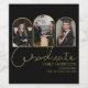 Party the night away at your graduation party, with these modern, personalized arched 3 photo wine labels. Featuring a black backgound, script which reads 'GRADUATE', your favourite graduation photo's in the shape of arches, with a border of gold and personalized with, your school/college name and the class of 20XX. Background colour can be changed by clicking on the customize further link after personalizing.
