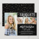 Create your own look with this custom colour graduation party invitation featuring 4 photos and decorative calligraphy typography titles for GRADUATE and CLASS OF YEAR accented with a graduation cap or mortarboard and faux gold confetti. All text, graphics, photo borders and background colours can be changed to school colours or to coordinate with your pictures (shown in black and white). The back features optional gold confetti which can be deleted if not desired. ASSISTANCE: For help with design modification or personalization, colour change, resizing or transferring the design to another product, contact the designer BEFORE ORDERING via the Zazzle Chat MESSAGE tab below or email makeitaboutyoustore@gmail.com.