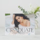 Announce your high school or college graduate's graduation with this modern graduation announcement. The graduation announcement displays "Graduate" in trendy black lettering with the graduation year displayed inside of the letter 'd'. Personalize the front of the announcement with the graduate's horizontal senior photo, name, and school. The announcement reverses to feature an additional photo with space for your custom announcement/message.