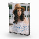 Celebrate your graduate's achievement with a custom graduation photo keepsake. The photo block features the graduate's vertical photo with "graduate" displayed in a trendy blue script. Personalize the modern graduation photo block by adding the graduate's name, school, and graduation year.