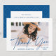 Modern Graduate Blue Script Photo Graduation Thank You Card