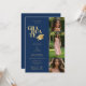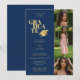 Modern Graduate Collage 3-Photos Navy Blue & Gold Invitation