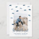 A simple graduation party invitation. Design features a classic white background, a photograph of the graduate, 3 shades of blue coloured motarboard confetti (which can be chanaged to any colour), the text 'Let's Celebrate the Grad!', name, place of study and class year. On the reverse you have the option to upload another 4 pictures and customize the modern party template with your own event details.