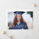 A simple modern card to announce a very proud moment. The front features GRADUATE in simple white typography and the graduates photo. Personalize with the graduates name, graduating year and school. The reverse side allows for a personal message