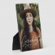 Celebrate your graduate's achievement with a custom graduation photo keepsake. The photo plaque features the graduate's vertical photo with "graduate" displayed in a trendy white script. Personalize the modern graduation photo plaque by adding the graduate's name, school, and graduation year.