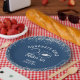 Personalized graduation party or open house paper plates featuring a modern, stylish typography design for the class year in your choice of colour (shown in blue) with a faux silver glitter confetti border, CONGRATS GRAD and your graduate's name. Choose a school colour or coordinating party theme colour in EDIT. ASSISTANCE: For help with design modification or personalization, colour change, resizing, transferring the design to another product or if you would like coordinating items, contact the designer BEFORE ORDERING via the Zazzle Chat MESSAGE tab below or email makeitaboutyoustore@gmail.com.