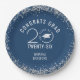 Modern Graduation Blue Faux Silver Glitter Paper Plate