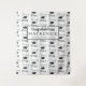 Modern graduation party backdrop or photo op background featuring a repeating pattern of CLASS OF (Year) in black and white and personalized with CONGRATULATIONS graduate's name and school name or other custom text. TAPESTRY OPTIONS: The sample is shown in the 50x60" size--other sizes are available on the ordering page. ASSISTANCE: For help with design modification or personalization, colour change, resizing, transferring the design to another product or if you would like coordinating items, contact the designer BEFORE ORDERING via the Zazzle Chat MESSAGE tab below or email makeitaboutyoustore@gmail.com.