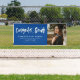 Congratulate the graduate! This banner features a place for a photo of the grad along with a trendy and modern "congrats grad" and custom text that can include name, school, year and future plans in white. Makes a great graduation yard sign to celebrate your senior and also works and graduation party decor. The default colour is a blue, but that's editable to your school colour by clicking "customize." Check out the Lea Delaveris Design graduation collection for coordinating items.