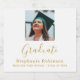 Celebrate your graduation party in style. Design features the word Graduate written with a modern gold script hand lettered style on a clean white background. Personalize by adding photo, graduate's name, school name, year. Easy to customize. Congratulations!