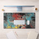Make a bold statement with this modern abstract paint splatter desk mat. Featuring a vibrant urban street art style with drips and splatters in teal, red, and yellow, this textured acrylic art design is the perfect centerpiece for a creative home office or gaming setup. It’s where fine art meets functional desk decor.