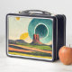 Surreal, modern graphic design of Devil's Tower National Monument on a metal lunchbox. Perfect for your dining carrier needs.