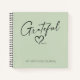 Attract that positive energy with a personalized "Gratitude Journal" notebook, featuring a unique custom - modern minimal design with "Grateful" in elegant handwritten ink script, a beautiful calligraphy style heart and your personalized name. In light sage green, black and grey or easily edit the primary colour as you like. A great gift for yourself and maybe someone else.