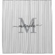 Add a touch of elegance to your bathroom with this personalised gray striped shower curtain. Featuring a soft gray and white striped background, the design is customised with your monogram initial and name in a fancy script font, creating a timeless and feminine look that feels both stylish and refined.