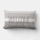 Modern gray white stripes Welcome family name Lumbar Pillow