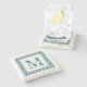 Modern Greek Key Frame Monogram Elegant Navy Stone Coaster