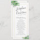 Realistic looking green palm tree leaves surround a gold-coloured geometric border on a simply modern and elegant tropical beach destination wedding program with minimalist flair.