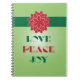 Modern Green and Red Love, Peace, Joy quote Notebook
