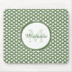Modern Green and White Scallops Monogram and Name Mouse Pad