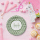 Give your party style a modern edge with these graphic green and white fish scale scallop pattern paper plates that you can add the name and monogram initial of the party girl to. This trendy geometric shell pattern design is bold, yet stylish.