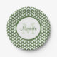 Modern Green and White Scallops Monogram and Name Paper Plate